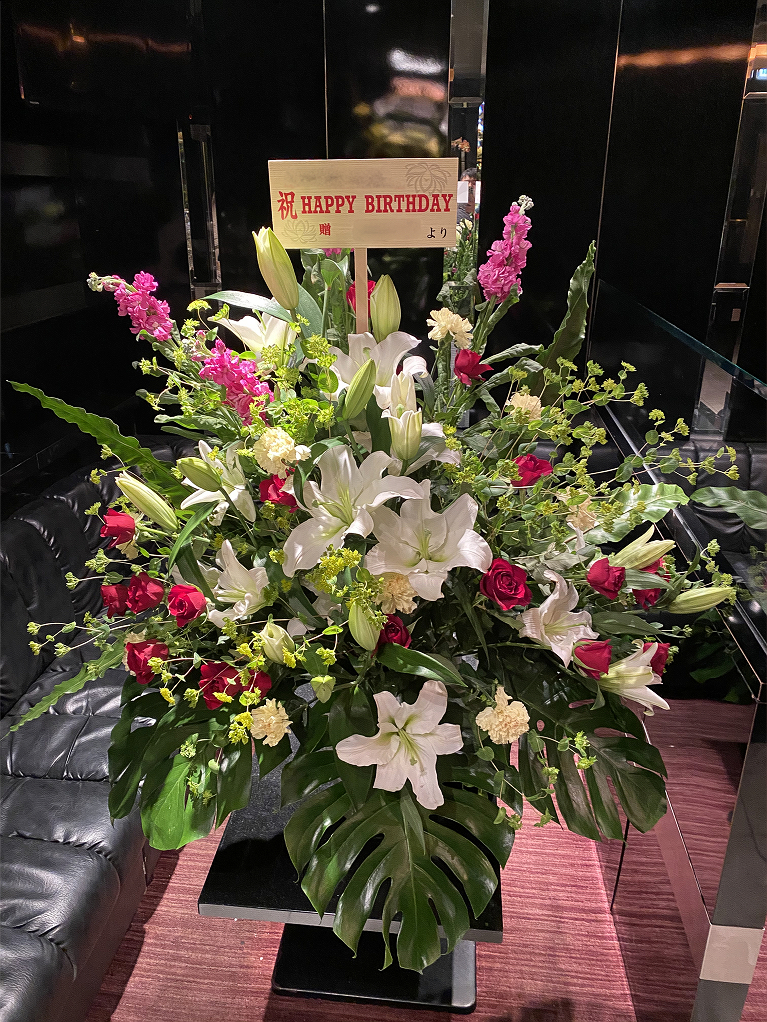 【祝・お誕生日お祝い】お誕生日のお祝いに生花スタンドと生花アレンジメントをお届けさせて頂きました!