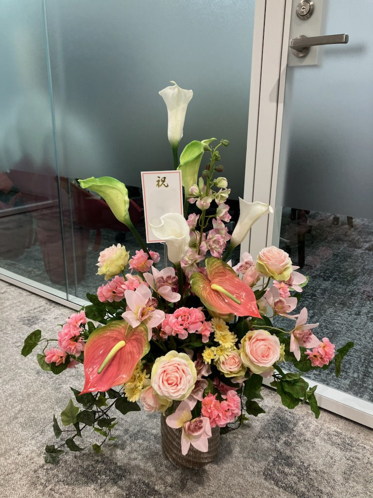 お客様より花輪2本(矢羽根)と造花アレンジメントのご注文を頂き設置お届けさせて頂きました。